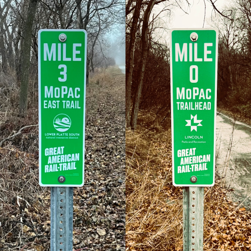 This past fall, the MoPac Alliance completed a mile marker project after years of planning and discussion. With funding from two grants—$10,000 from Rails to Trails Conservancy and $10,000 from Eastern Nebraska Trails Network—GPTN installed mile markers every half mile, both within and outside Lincoln city limits. These reflective, low-profile markers begin at mile 0 at the MoPac Trailhead on 84th Street and extend to the Wabash Trail near mile 21.5. Once the MoPac gap is completed, additional markers will be added all the way to the Lied Bridge.